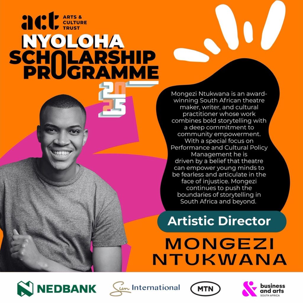 Mongezi Ntukwana was appointed as the Artistic Director for the ACT Nyoloha Scholarship Programme 2025, overseeing a national initiative that develops young South African artists aged 17–25 across performing, visual, and digital arts. The programme is presented by the Arts & Culture Trust in partnership with Nedbank Arts Affinity, supported by Sun International, MTN Foundation SA, BASA, and the Market Theatre. Responsibilities included shaping the creative process, mentoring finalists, and directing the culminating showcase.